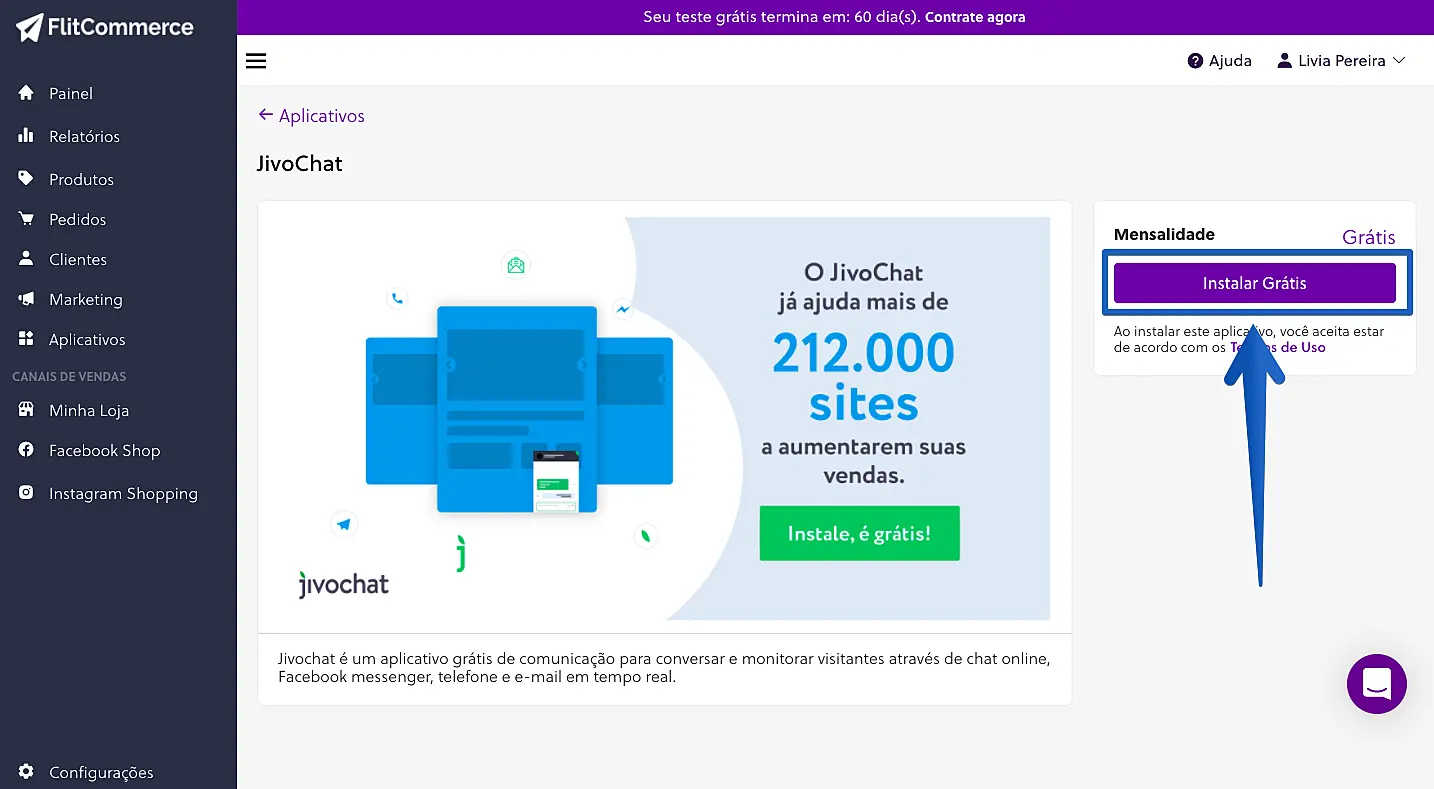 Este tutorial ensinará você sobre o processo de instalação do JivoChat dentro da plataforma da FlitCommerce.