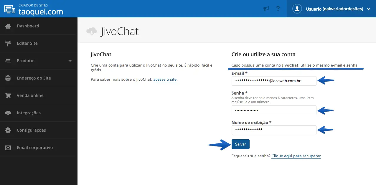 Como instalar o código do chat na Locaweb