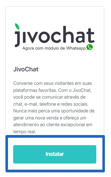 2º Passo: Procure na lista o aplicativo JivoChat e clique em Instalar