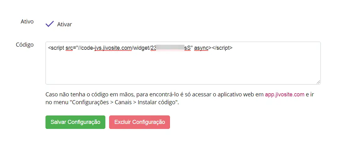 2. Instale o código do JivoChat em seu site: