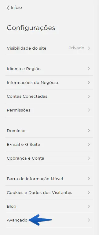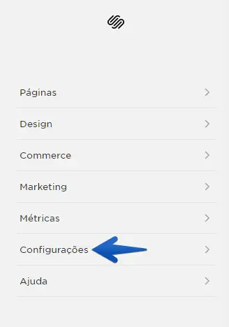 Primeiro, acesse o painel administrativo do Squarespace e, no menu à esquerda, clique em "Configurações".