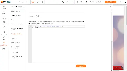 3. Como instalar o JivoChat no Criador de Sites do UOL Host