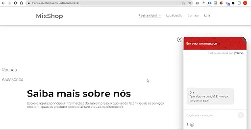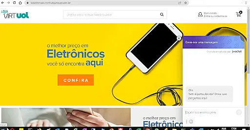 Para testar se a integração teve sucesso, digite o domínio da sua loja no seu navegador de internet e verifique se subiu a janela do JivoChat. Exemplo: https://lveletronicos.minhalojanouol.com.br/