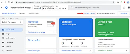 Obs: O identificador (ou ID) GTM é gerado assim que o cliente cria sua conta dentro do Google Task Manager