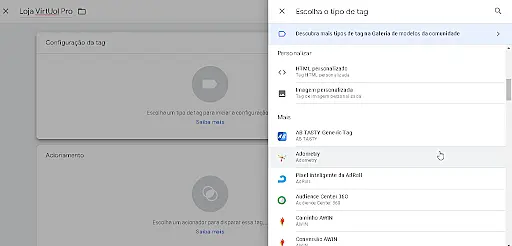Clique em configuração da Tag, role a tela e clique na opção "HTML Personalizado":