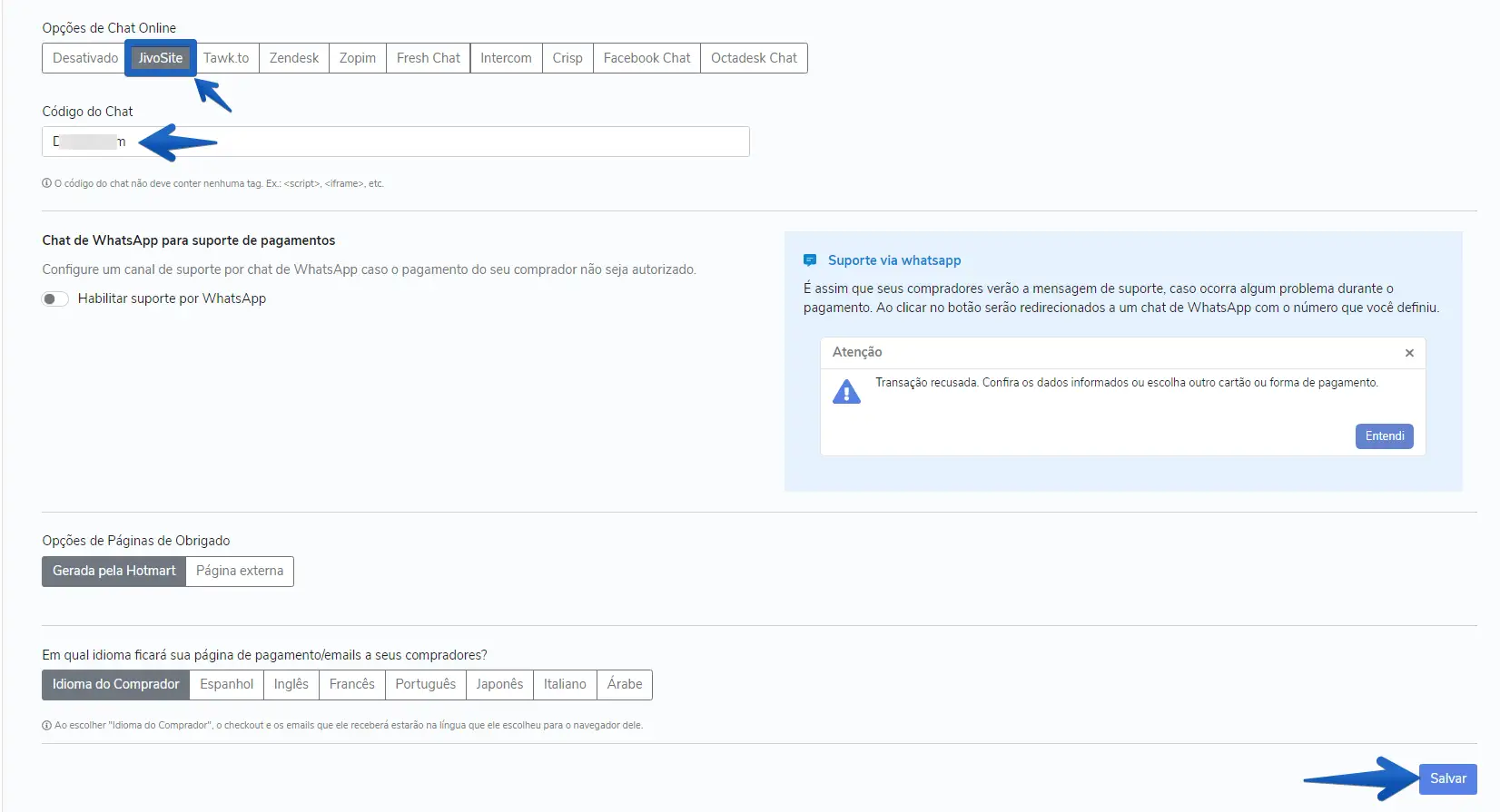 Como instalar o chat no checkout da Hotmart