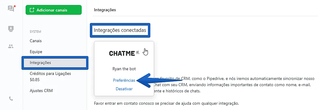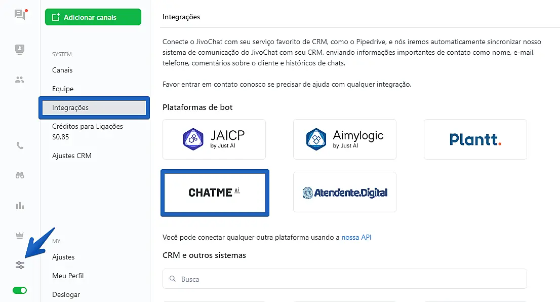 Como integrar o JivoChat ao Chatme.ai