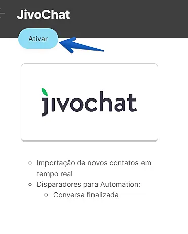 Faça login no seu Painel Perfit -> vá em Integrações -> JivoChat e clique em Ativar, para obter o URL do webhook