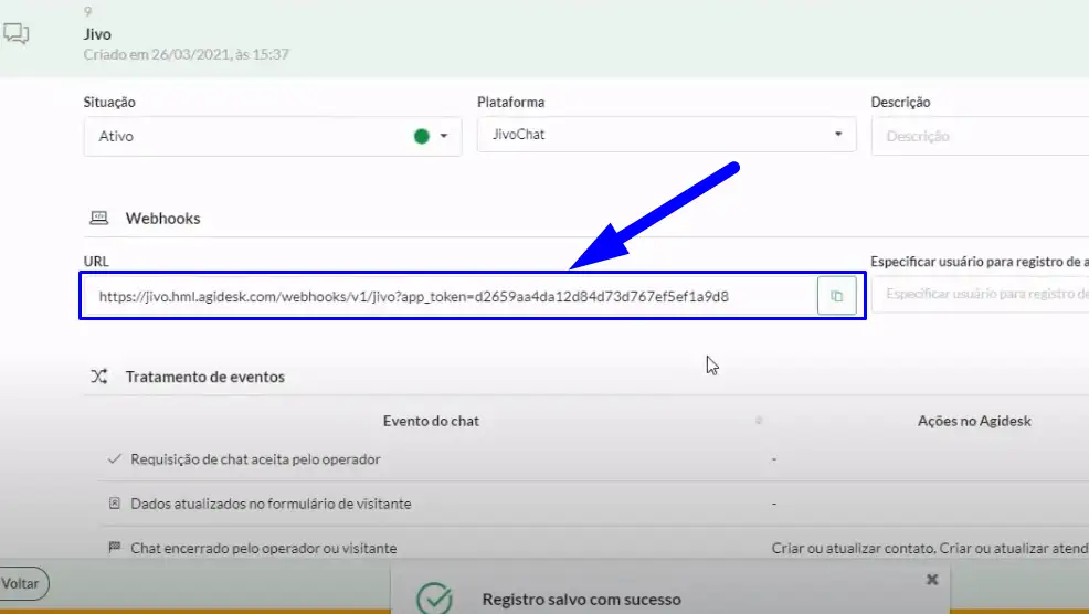 Pronto! Agora o seu jivo está integrado ao Agidesk
