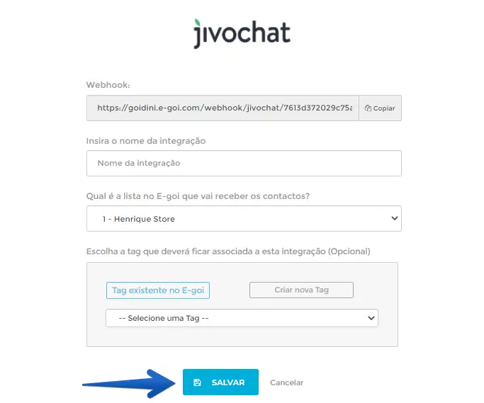 Pronto! Agora seu Jivochat está integrado ao E-Goi com sucesso!
