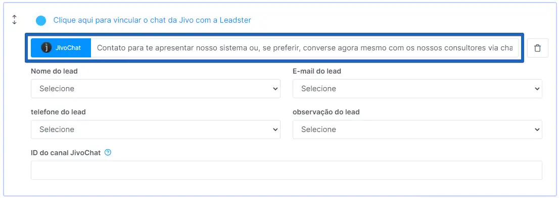 Nessa integração também é permitido receber as informações que o lead preencheu no assistente virtual da Leadster dentro do JivoChat, logo no momento em que ele iniciar uma conversa no chat do JivoChat.