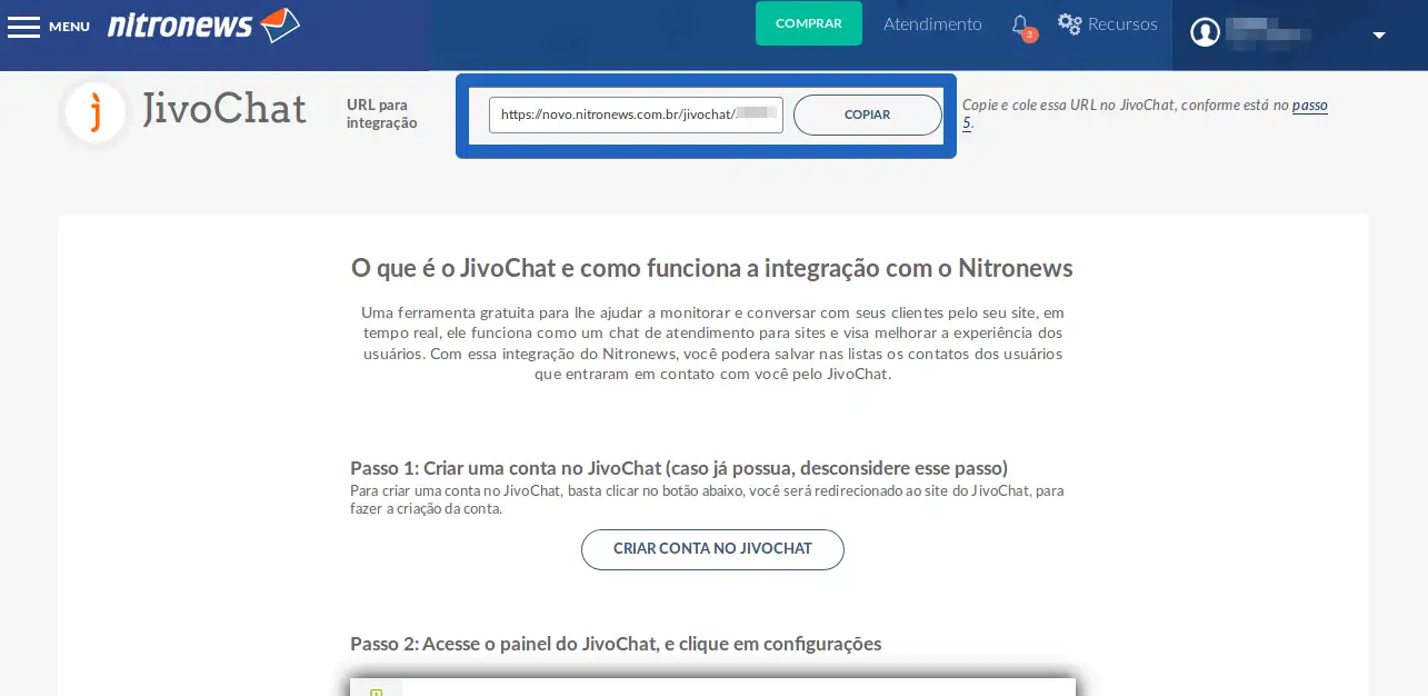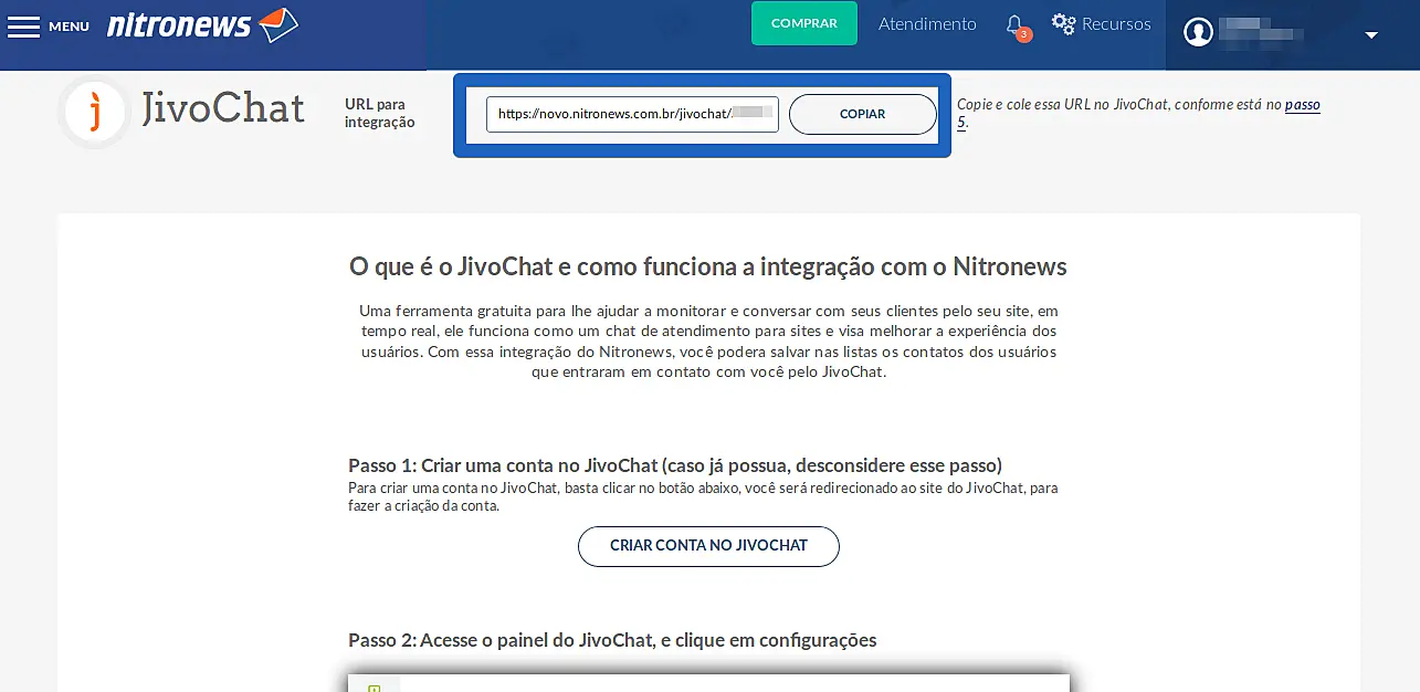 Para integrar o JivoChat à Nitronews, basta seguir os passos abaixo:
