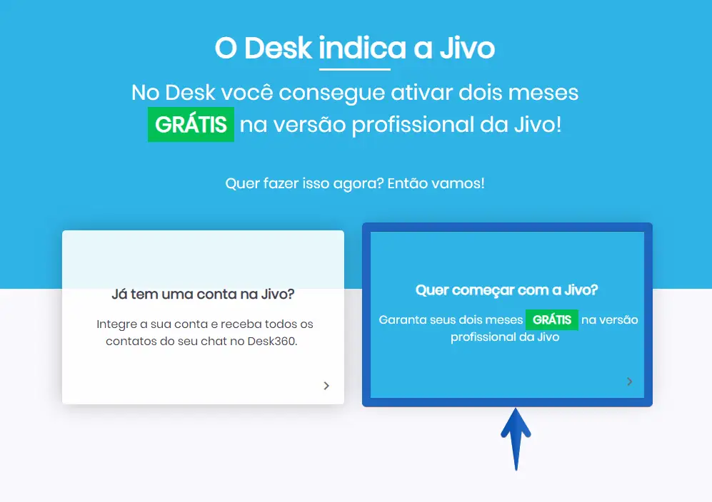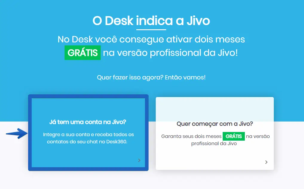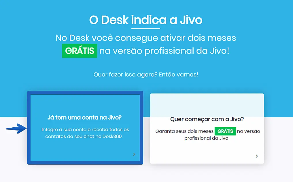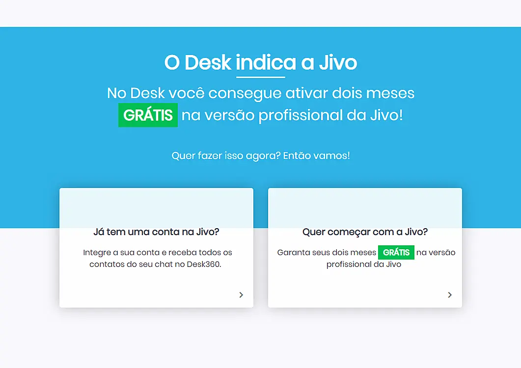 Acesse seu painel do Desk360 e siga para "Integrações" -> "JivoChat".