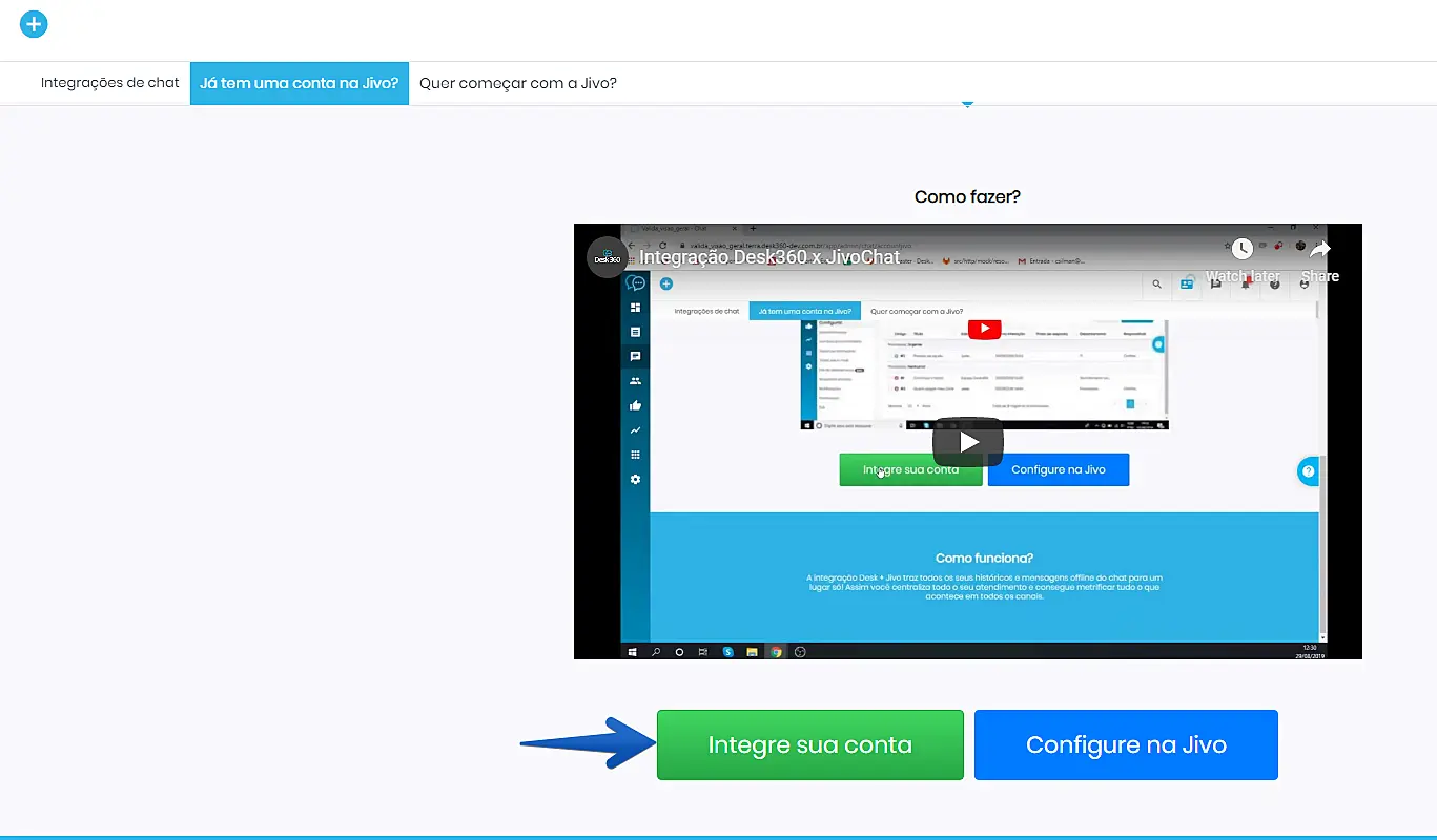 Para conectar o JivoChat ao Desk360, basta seguir os passos abaixo: