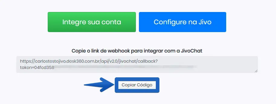Você notará que um código de integração será gerado. Clique em "Copiar Código".
