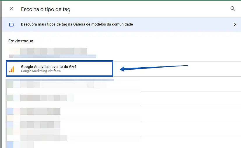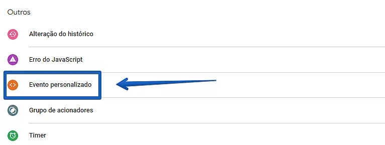 Agora selecionamos a opção "Evento personalizado", conforme mostrado abaixo: