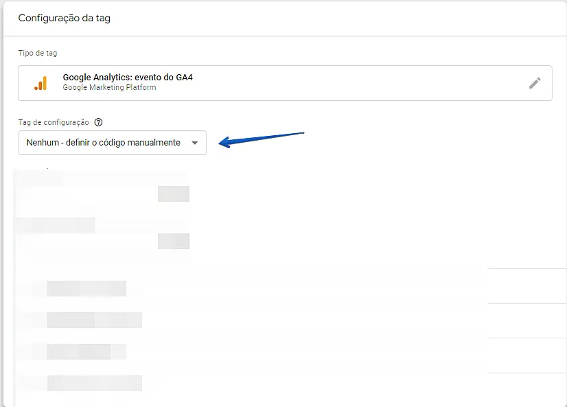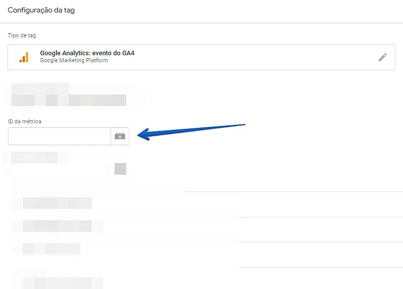 Retorne ao seu painel do Google Tag Manager, escreva "G-" e cole o seu ID