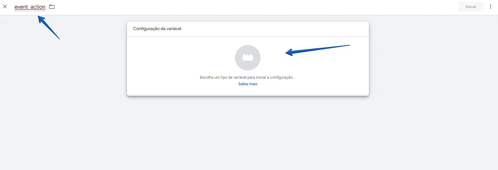 Digite o nome do evento como: event_action e clique para escolher o tipo de variável