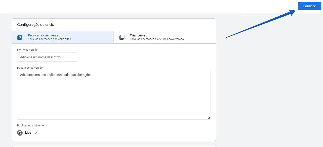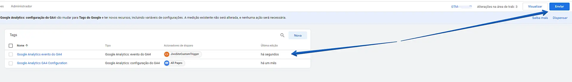 NOTA: você deverá aguardar até 72h horas para que os eventos sejam refletidos em sua conta através do Google Tag Manager.
