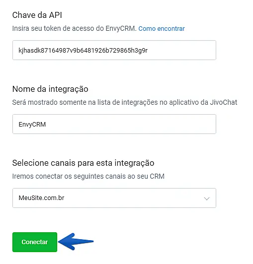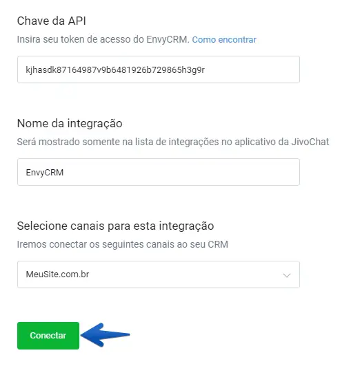1.Chave da API: Dentro do EnvyCRM, navegue até Configurações -> Integração -> API, e clique no botão "Obter a chave API".