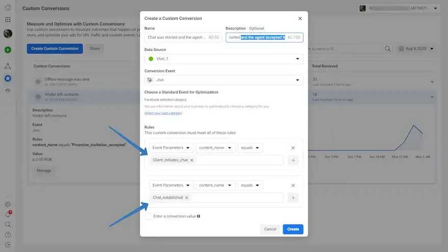 Caros clientes! Além de visualizar suas estatísticas do chat pelo painel de controle da JivoChat, você pode acompanhar e analisar eventos também no Facebook Pixel analytics.