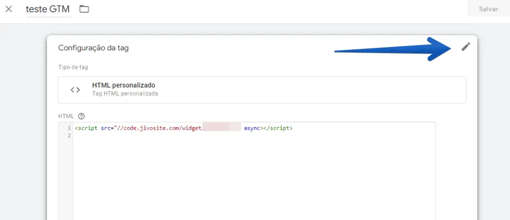 Onde tem "HTML Personalizado", clique em cima do lápis novamente