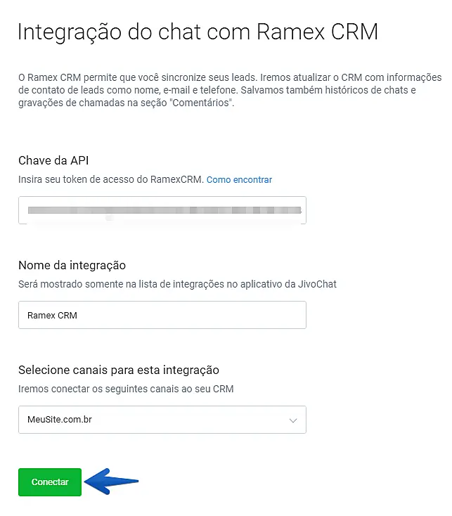 2.Nome da integração: O nome que será mostrado na lista de integrações conectadas. Você pode escolher qualquer nome.