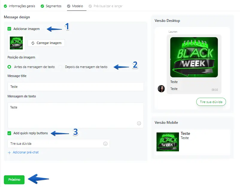 Ao finalizar todas as personalizações desejadas, clique em "Próximo"