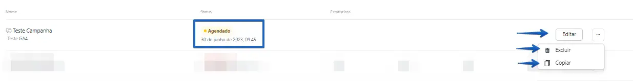 - Você pode copiar a campanha caso precise apenas alterar algumas informações (isso economizará tempo para você quando tiver muitas campanhas semelhantes)