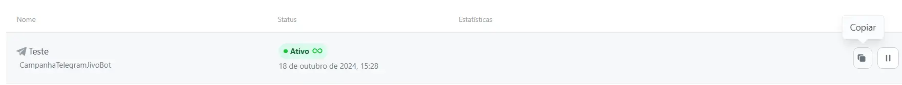 Você pode copiar uma campanha em qualquer status. Passe o mouse sobre a linha com seu nome para ver o ícone desejado.