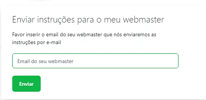 Caso clique para enviar as instruções para o seu webmaster, basta inserir o e-mail do seu webmaster no campo abaixo e clicar em "Enviar":