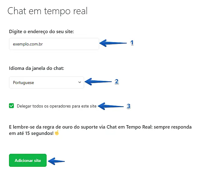 - Você pode escolher o idioma da janela de bate-papo. Isso será mostrado em seu site.