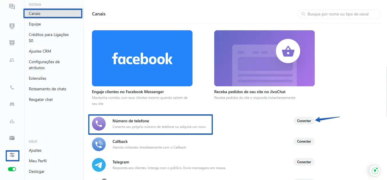 Se você deseja também receber ligações pelo JivoChat, siga os passos abaixo: