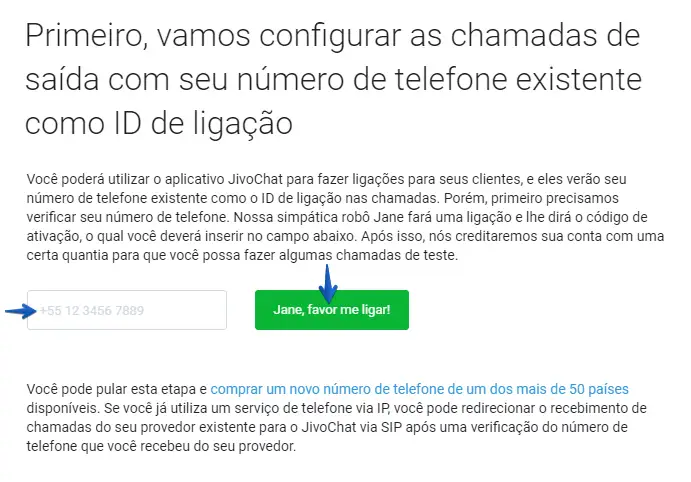 IMPORTANTE: se você ativar um número de telefone normal, só poderá fazer chamadas. Para receber chamadas usando o JivoChat, é necessário ativar um número SIP próprio ou adquirir um número de telefone no JivoChat.