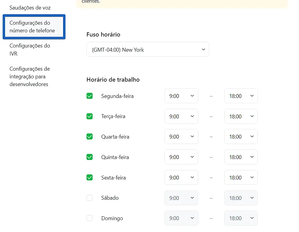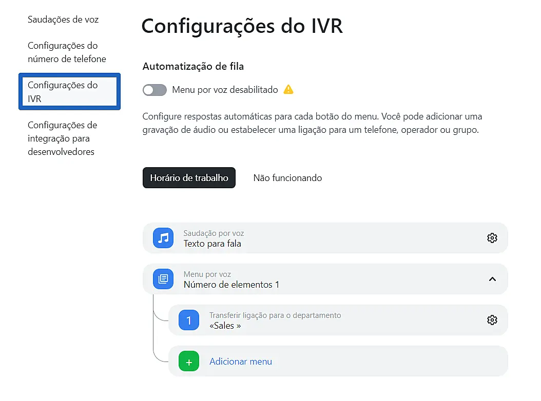Configure um menu de voz para o horário de trabalho.