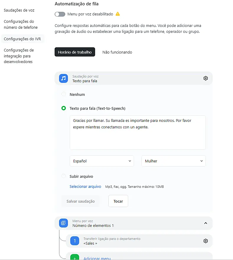 Configuração do menu de voz (IVR)