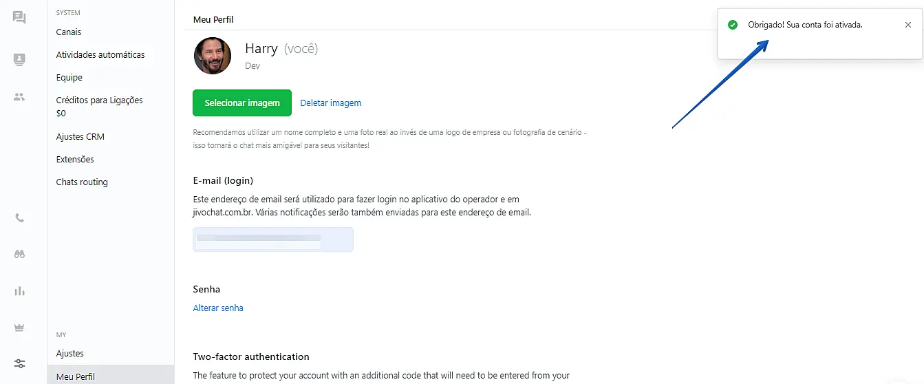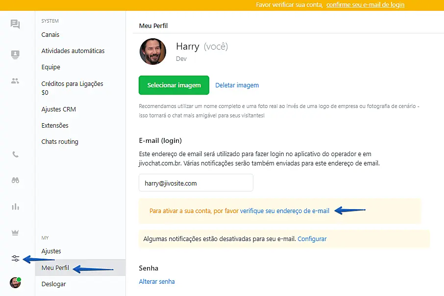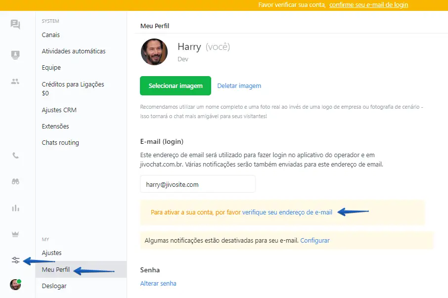 Como verificar seu endereço de e-mail no JivoChat