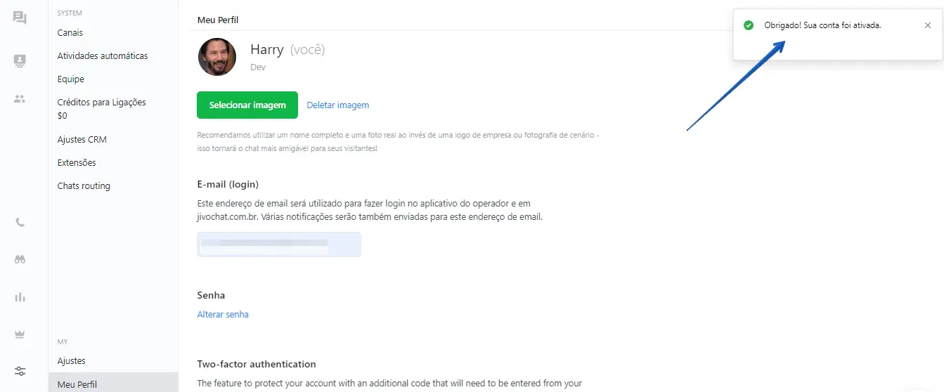 Feito! Seu e-mail foi verificado e você já pode começar a atender seus clientes através do JivoChat.