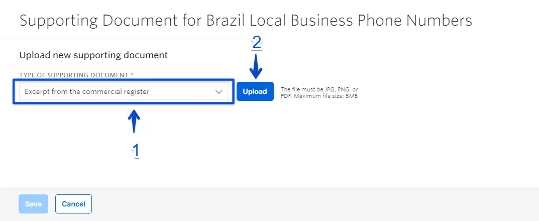 - Country: selecione o país desejado para definir a origem do seu número. Recomendamos que seja o mesmo país onde aconteceu a abertura da sua empresa;