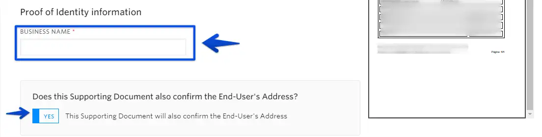 Caso não possa usar a opção de recebimento de código no momento, continue a verificação enviando documentos que comprovem o seu negócio e que corresponda aos dados informados nos campos anteriores.