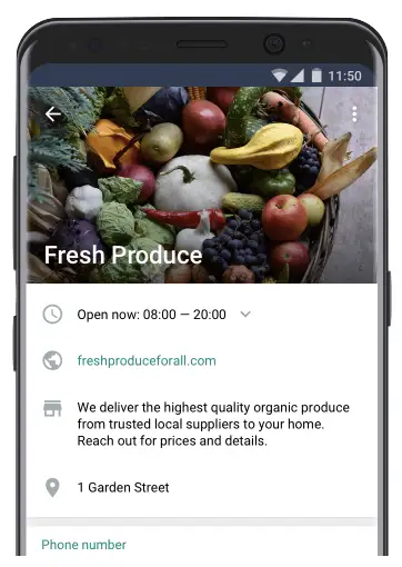 - Confirme os detalhes da sua empresa: neste campo você selecionará o endereço e o número de telefone que deseja mostrar em seu perfil comercial. Depois de concluir a verificação da empresa, seu perfil comercial será atualizado para corresponder às informações verificadas.