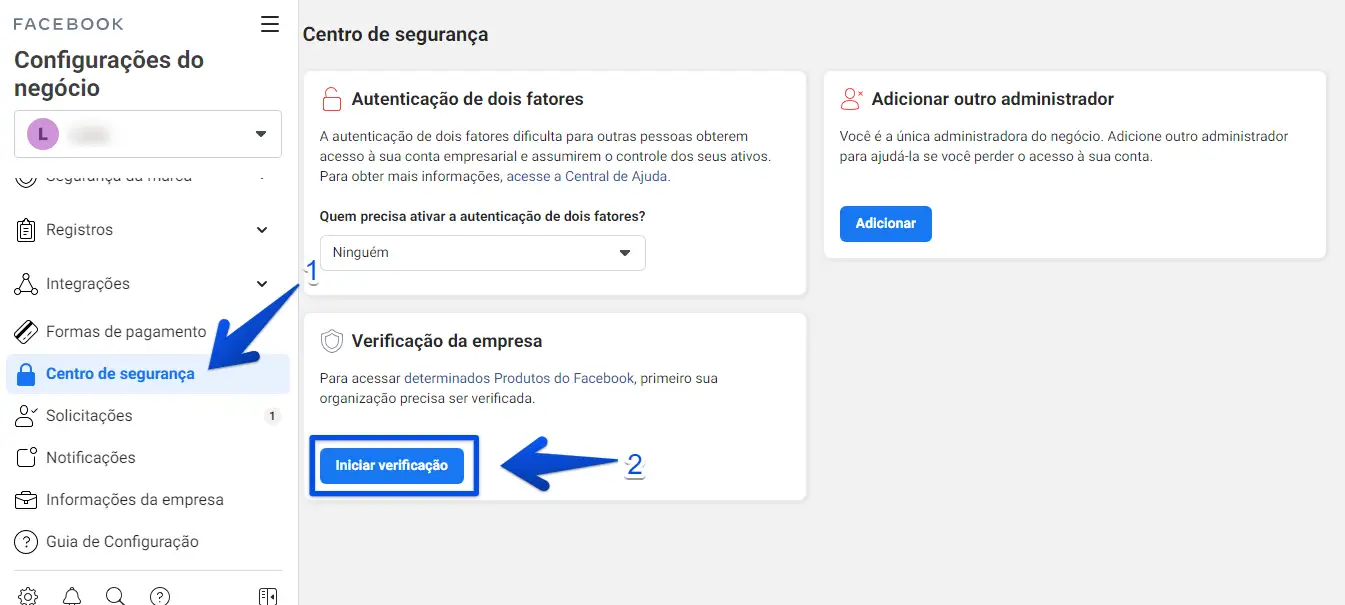 Verifique sua conta no Gerenciador de Negócios do Facebook (veja a imagem abaixo)