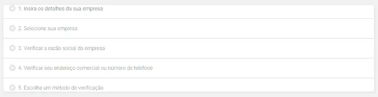 Insira os detalhes da sua empresa: neste campo você deverá inserir as informações que estão vinculadas ao seu cartão CNPJ para que não tenha problemas nas próximas etapas, pois precisará anexar documentos de prova de endereço.
