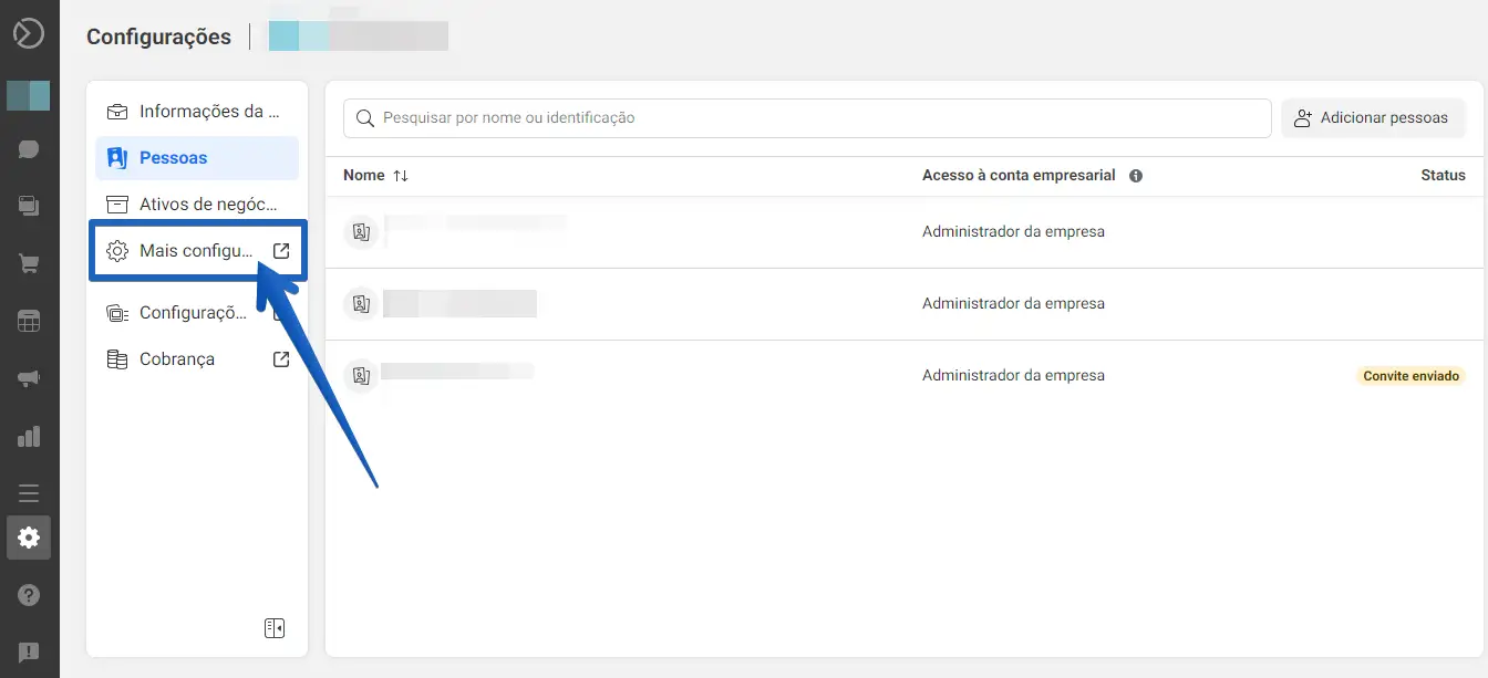 O Facebook te direcionará à seguinte página. Retorne às Configurações do negócio.