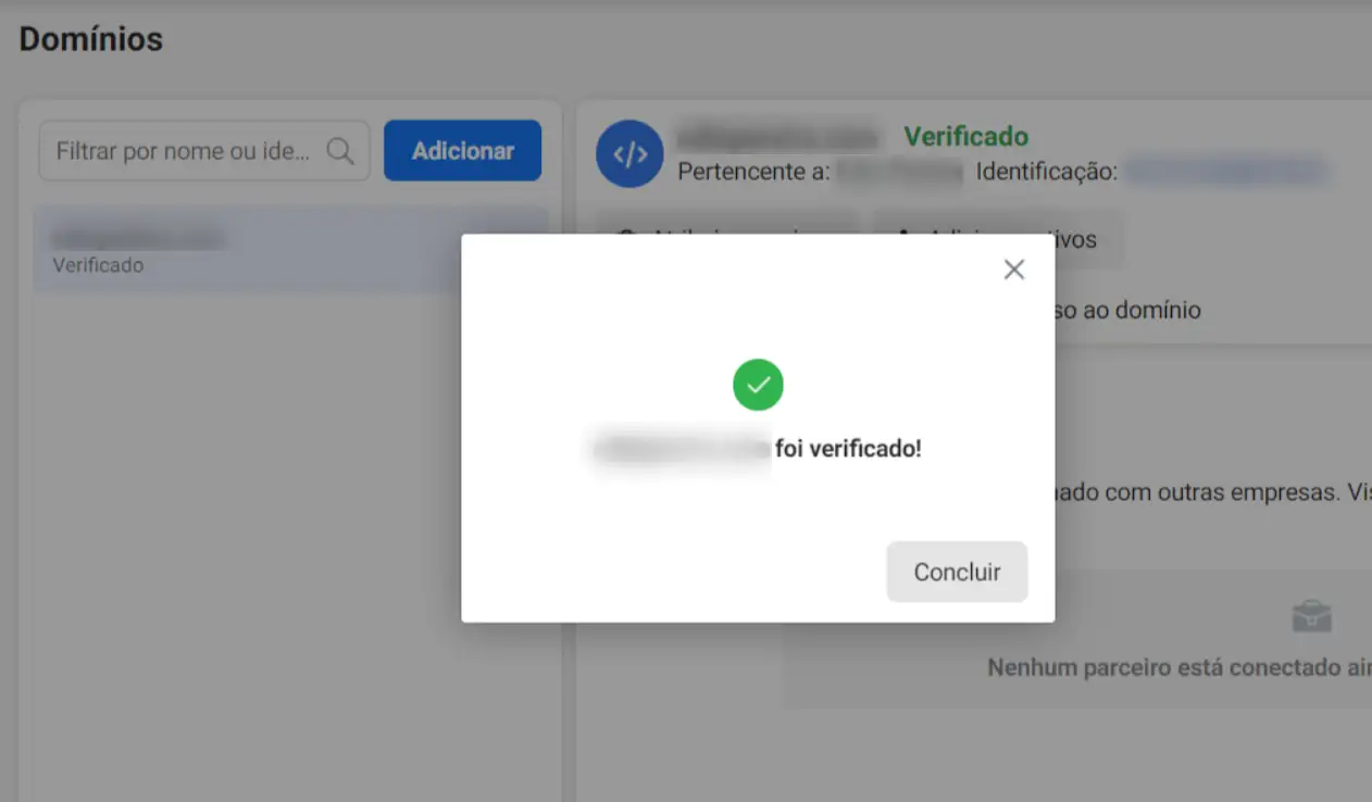 Agora uma mensagem irá aparecer em sua tela indicando que seu domínio foi verificado