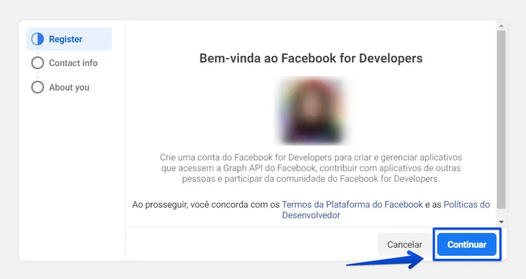 - Email de contato do aplicativo: recomendamos que use um email empresarial e que você possua acesso.