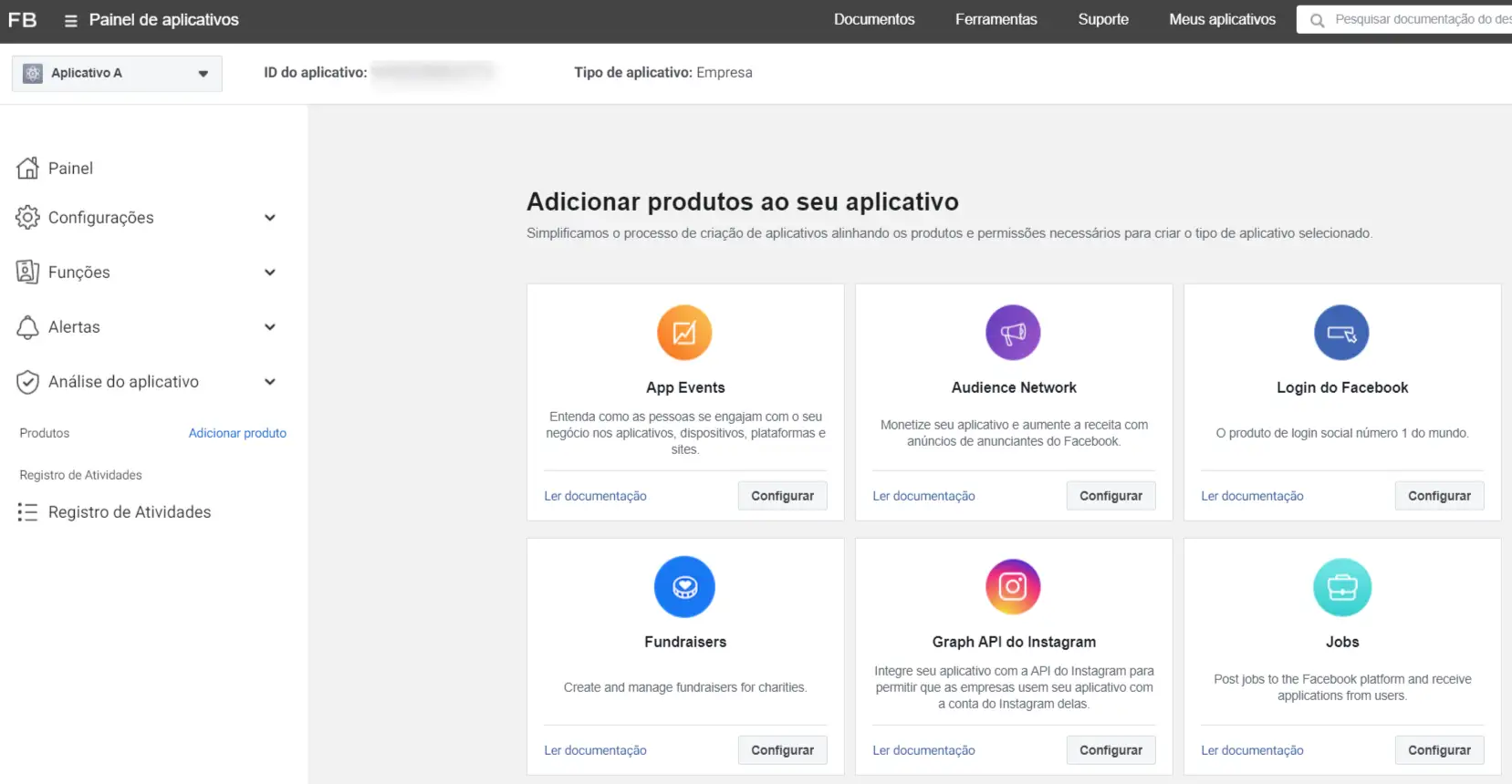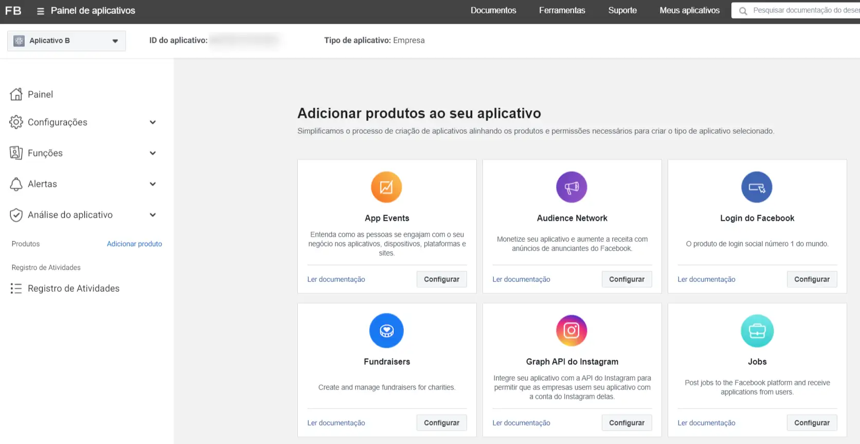 Em seguida o Facebook te direcionará a uma página semelhante a abaixo. Clique em Criar aplicativo.