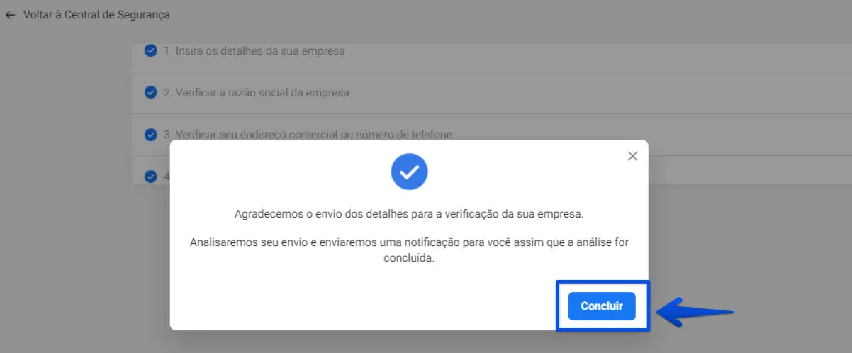 - O Facebook atualmente possui um prazo de 15 a 30 dias para realizar a verificação do Gerenciador de Negócios (Business Manager).