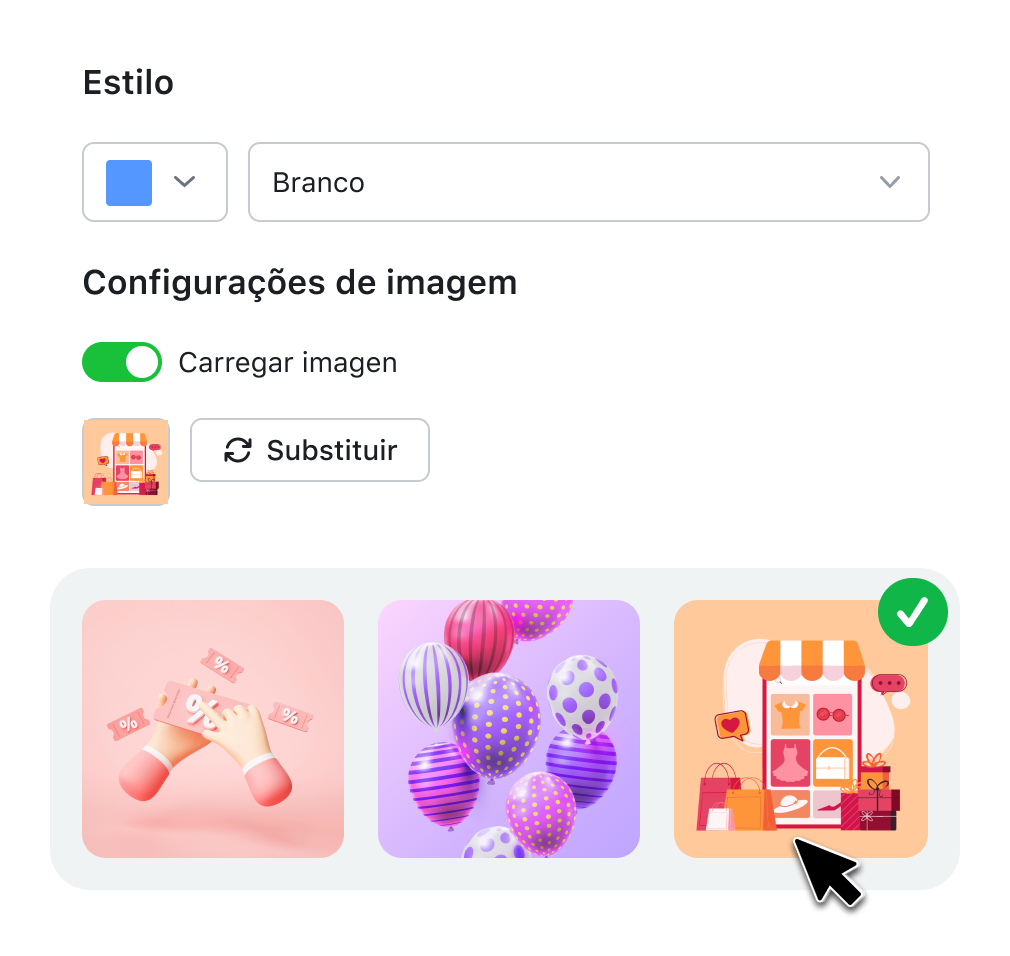 Configure pop-ups que se encaixam com a identidade da sua marca com opções de temas, cores e imagens.
