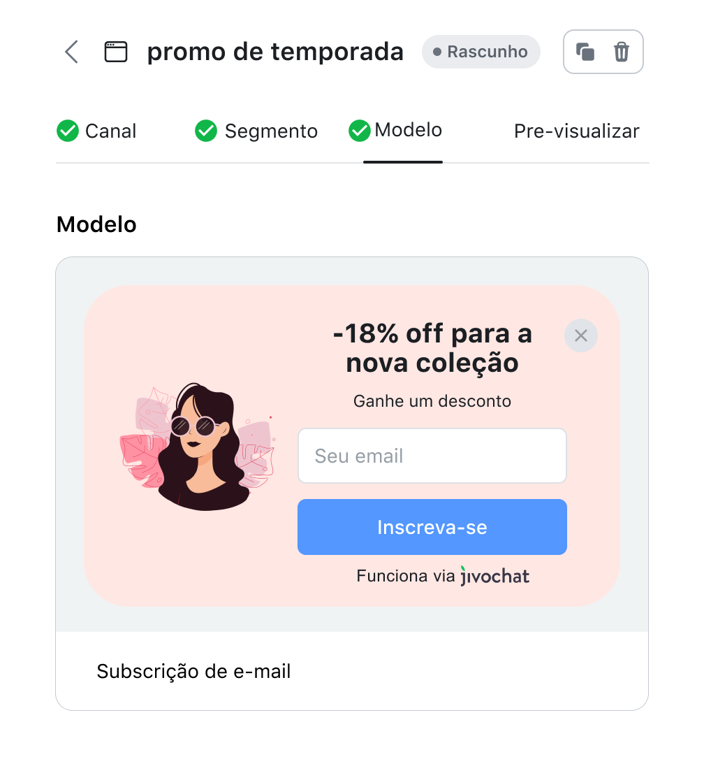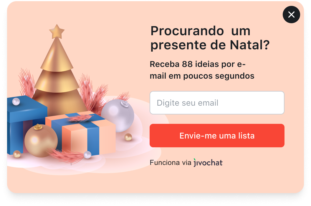 O e-mail continua a ser um canal de vendas confiável. Configure pop-ups em seu site para expandir o público com o qual você interage. Ofereça-lhes um desconto ou inscreva-os em sua base.
